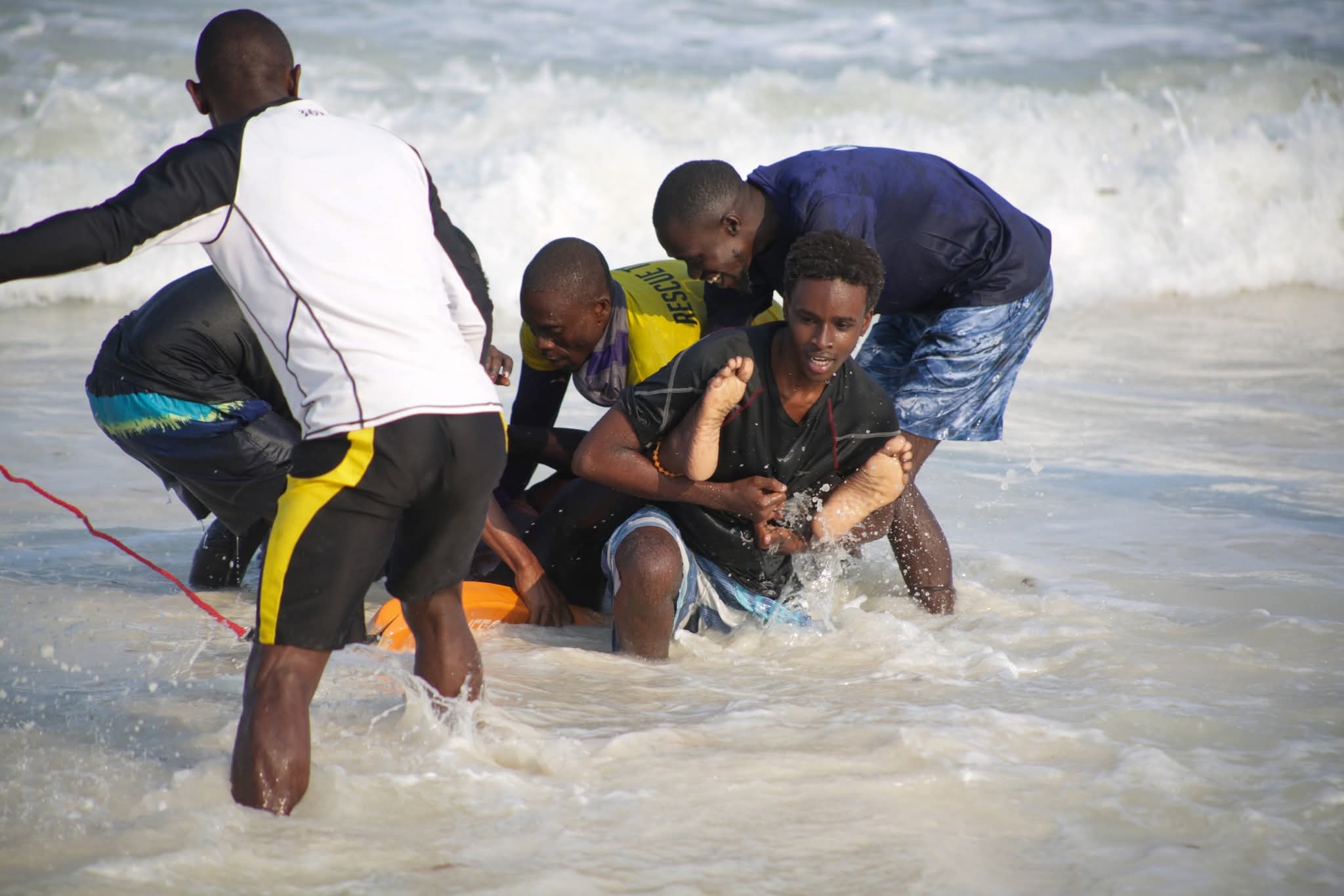 Two lifeguards swam out to reach them, relying heavily on their training, endurance, and swimming skills. One swimmer and one rescuer later received medical attention after swallowing water.