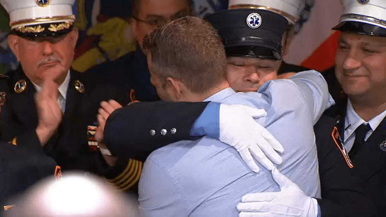 Another emotional reunion came when Jennifer Svenson, a mother of two, embraced the paramedic who saved her life after a severe electrical shock left her without a pulse in 2017.