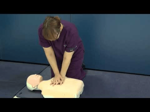 Instructor demonstrating proper CPR chest compressions on a training manikin.