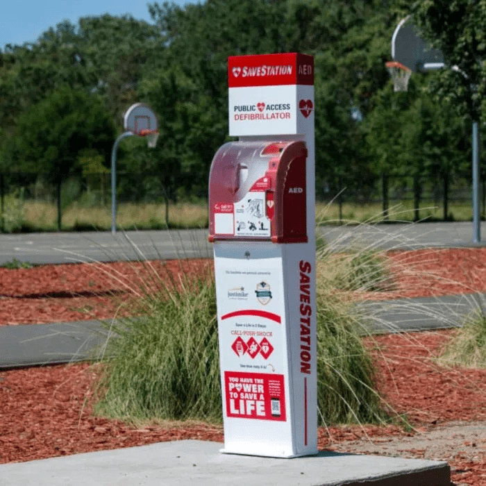 The SaveStation cabinet installed outside Troughton’s home isn’t just a box—it’s a smart lifesaving station designed to support emergency response: